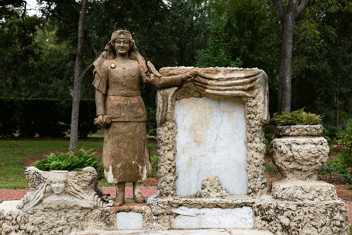 For more than 100 years, guests from every inhabited continent have traveled to tour the art environment of Laura Pope Forester. Since its reopening in 2019, Pope’s Museum has been inducted into the National Registry of Historic Places for Art and Women’s History, and while much of the original works have been destroyed or taken off site, a visit to Pope’s Museum still leaves guests inspired in the power of demonstrating solidarity and gratitude. You will be encouraged by both the artistic beauty and genius of Laura Pope Forester, as well as appreciate the inspiration that she demonstrated in breaking the gender barriers of the 19th and 20th century and the sacrifices endured by our military families. All groups and ages are welcome.